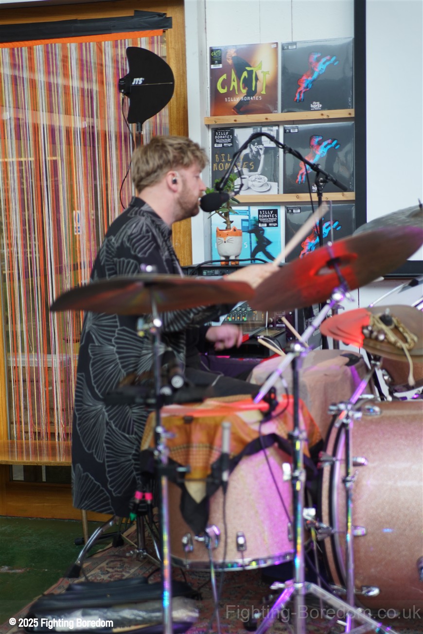 You know when you have watched something grow in your city and feel like you’ve been a part of it? Well, Fighting Boredom have spent a good amount of time in Just Dropped In Records right from when it was in a repurposed container through to its current space, part of an old industrial building repurposed into a marketplace and community area. There’s a fair amount of space when they clear the centre of the shop and it’s full tonight. The second album launch that we have covered and it promises to be a treat. Billy No Mates, with band, playing eight or so songs to introduce us to their new album, Metal Horse.