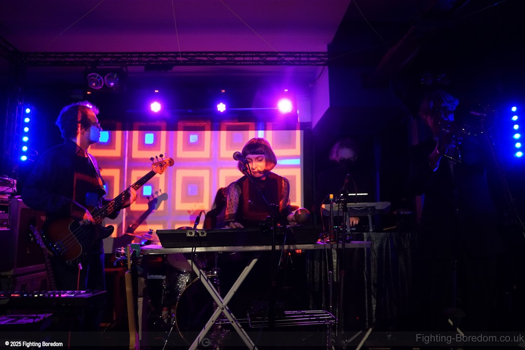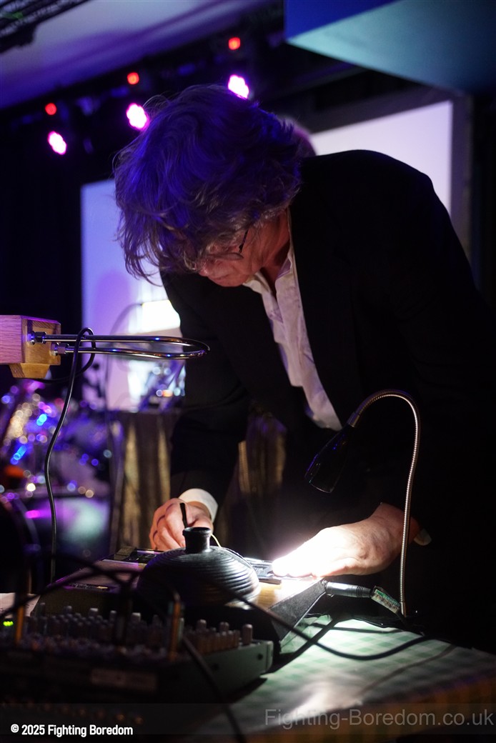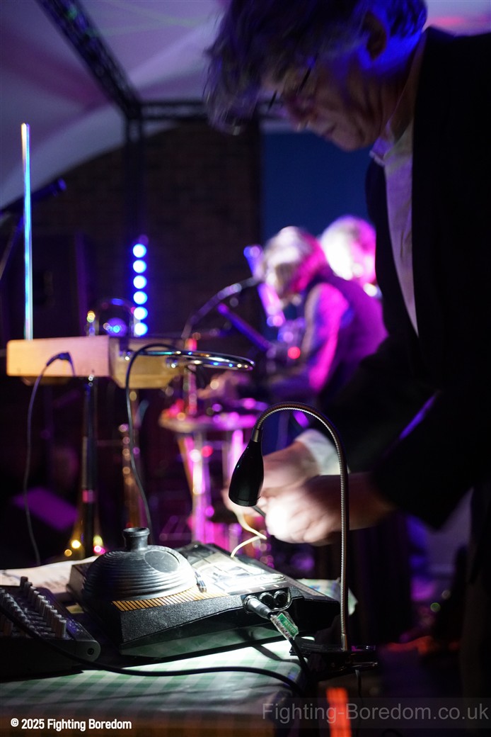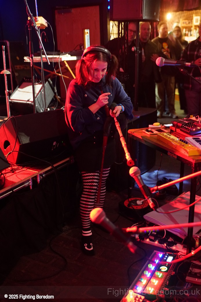 The Photographer last saw PRAM supporting the Hair and Skin Trading Company somewhere in Coventry a long long time ago. This time around it is halloween we are heading to the Canal Basin to the Tin for a Deliaphonic night which they are headlining. The Tin is pretty full already and the main room is made smaller by Madrigirl having to set up in front of the stage as every square centimetre of the stage is covered by PRAM’s gear. A sign at the front reads ‘DELIA DERBYSHIRE NOISES NOW’.