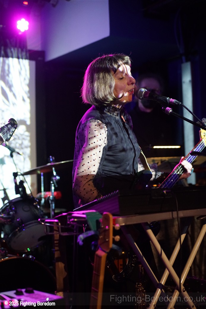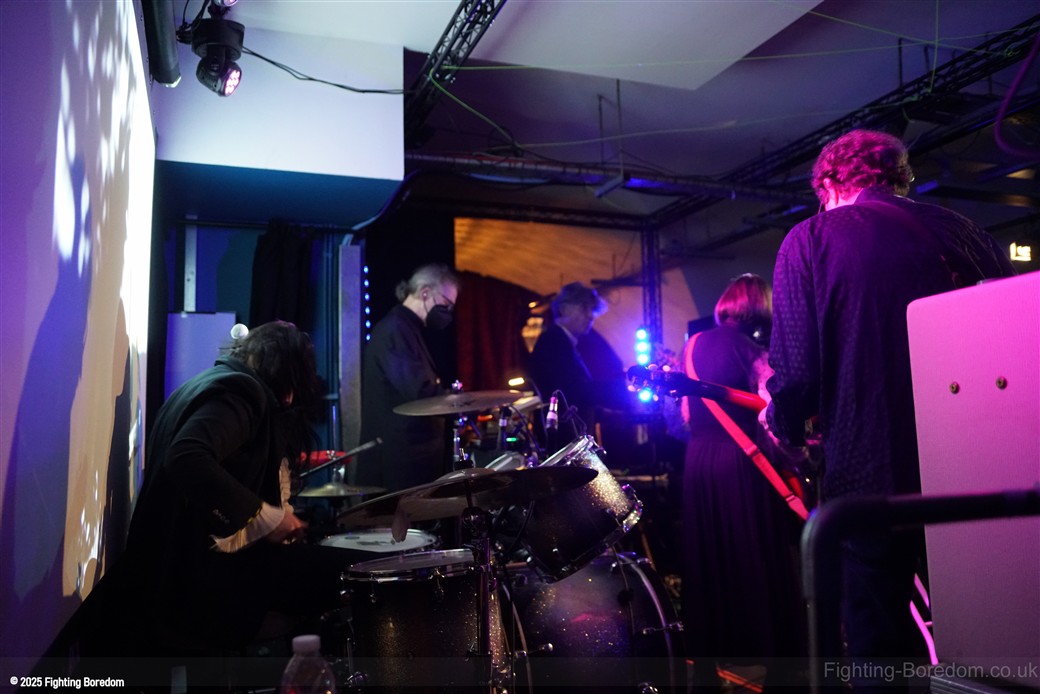 PRAM fill the stage. They have equipment everywhere, they come on and immediately blow my mind. A trombone blasts us up and down, deep, rich and vibrant, the drummer plays skitterish beats and synths create oddness all around, it’s loud, all enveloping and bonkers. Now there’s an oboe too, it feels like the theme tune for a British Sunday Morning, I can;t explain why, it just does. A funky punky beat comes into play and the wonderful trombone is back, it’s just great.