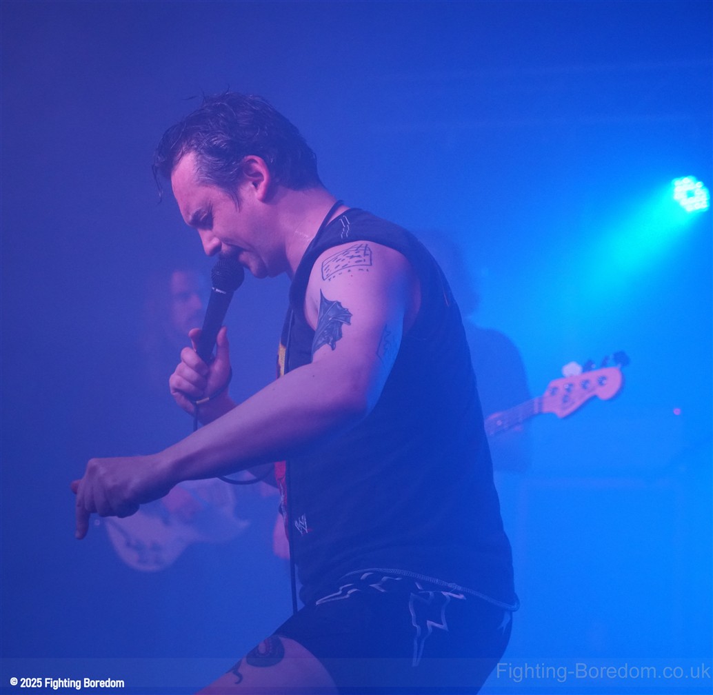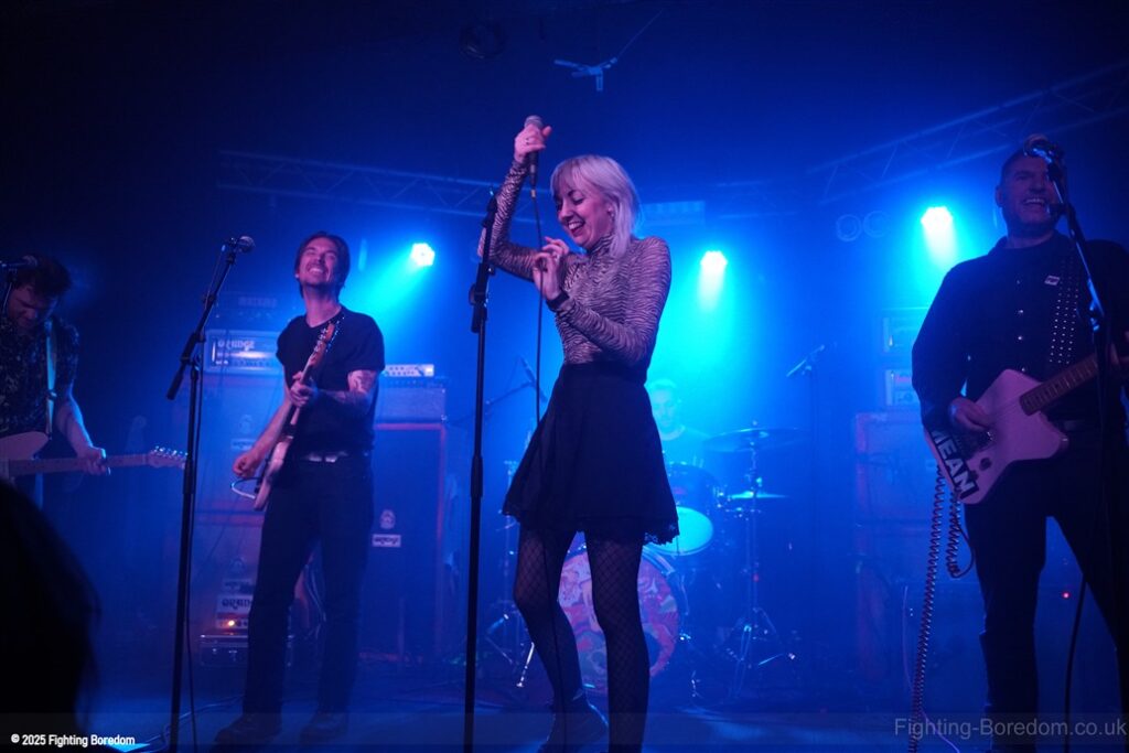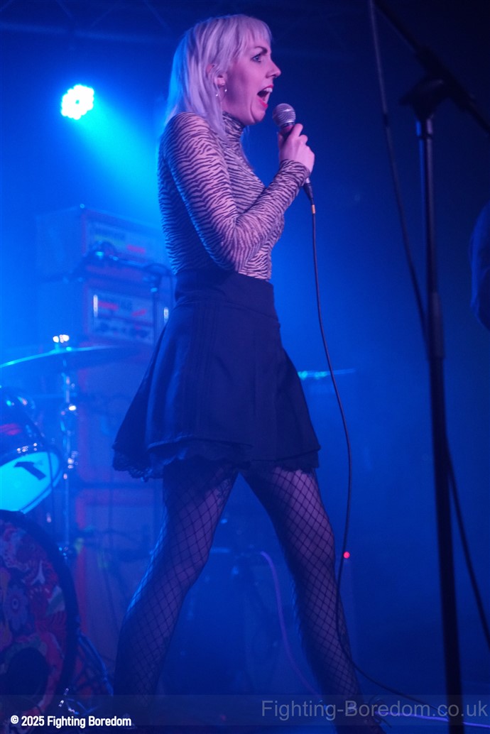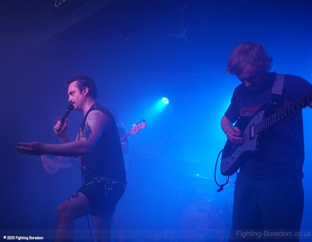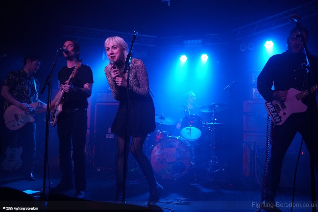 Irked are a punk band. They slide nicely into Garage rock’n’roll and a slice of Oi! On the side but it is most definitely punk and they are great. The singer is brilliant and seems to be screaming abuse at someone over the music as we come in, she looks wild. The guitarist introduces the songs and makes us and the rest of the band laugh. ‘Why’s everybody want a fight with me?’ Her voice is brilliant and she looks genuinely scary when singing this song. The next one may be called ‘Fuck Friday’ it might not be, it’s about going out in the week and they play it laughing, they are all having the best time playing and what they do is punk rock with no frills, just having a blast. They play a faster song and it’s verging on hardcore which is perfect for the vocal and then the singer is the crowd, kids dancing next to her, bringing it all together. She gets back up and the next one may be a ‘Gothic Song’ but I may have misheard that. The drums and bass get harder and the guitar whines over the top as the singer crouches down and sings looking scared. It turns to a hardcore thrash and it’s brilliant. The daft chat continues between the songs.