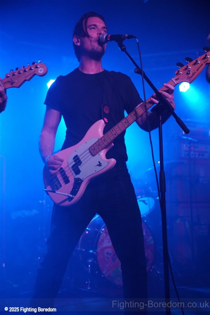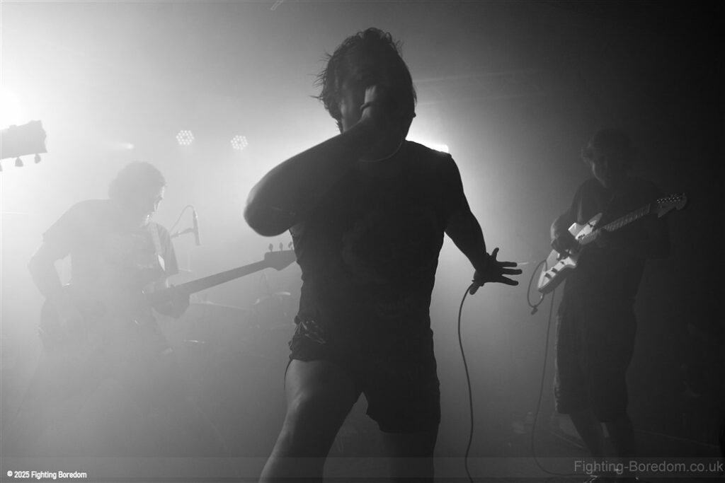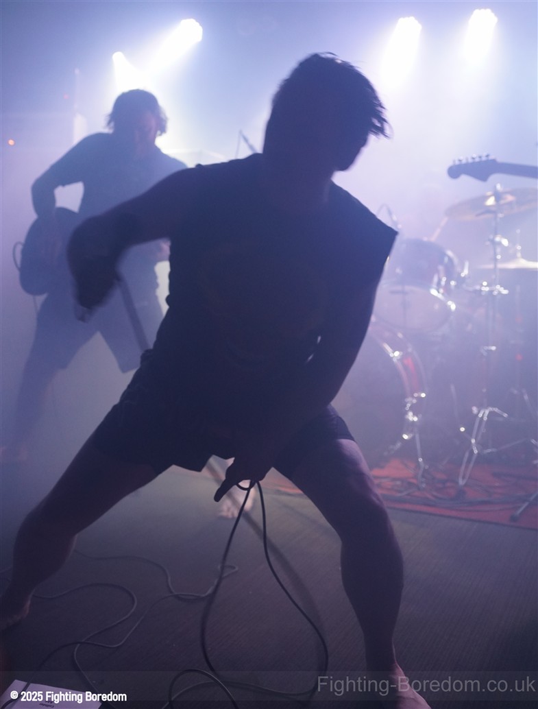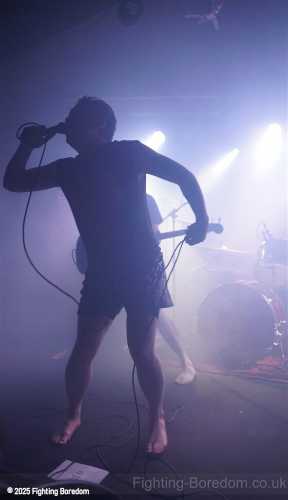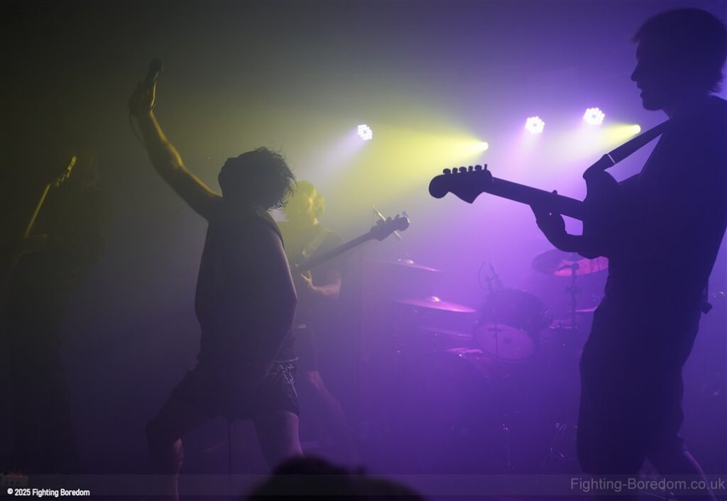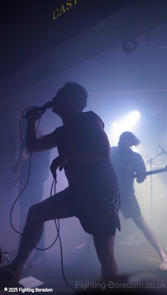 Irked are a punk band. They slide nicely into Garage rock’n’roll and a slice of Oi! On the side but it is most definitely punk and they are great. The singer is brilliant and seems to be screaming abuse at someone over the music as we come in, she looks wild. The guitarist introduces the songs and makes us and the rest of the band laugh. ‘Why’s everybody want a fight with me?’ Her voice is brilliant and she looks genuinely scary when singing this song. The next one may be called ‘Fuck Friday’ it might not be, it’s about going out in the week and they play it laughing, they are all having the best time playing and what they do is punk rock with no frills, just having a blast. They play a faster song and it’s verging on hardcore which is perfect for the vocal and then the singer is the crowd, kids dancing next to her, bringing it all together. She gets back up and the next one may be a ‘Gothic Song’ but I may have misheard that. The drums and bass get harder and the guitar whines over the top as the singer crouches down and sings looking scared. It turns to a hardcore thrash and it’s brilliant. The daft chat continues between the songs.